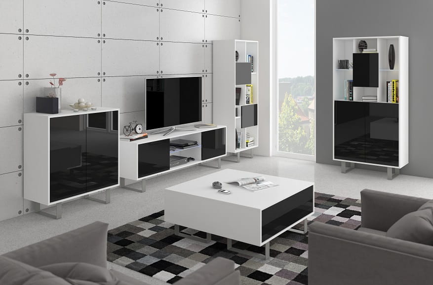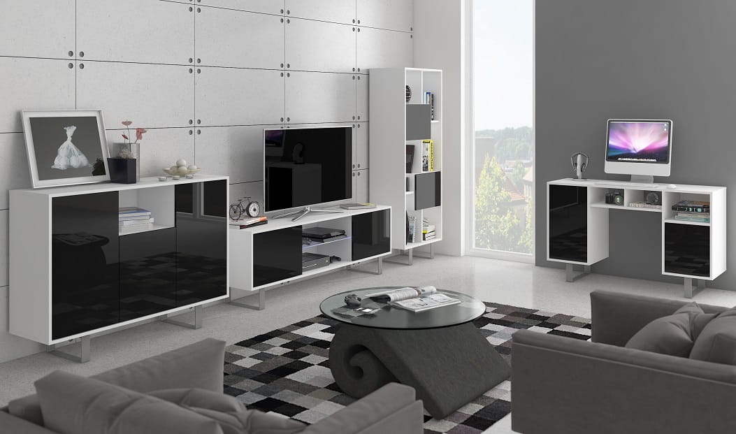 - Fronty mebli wykonane są na połysk (biały oraz czarny)