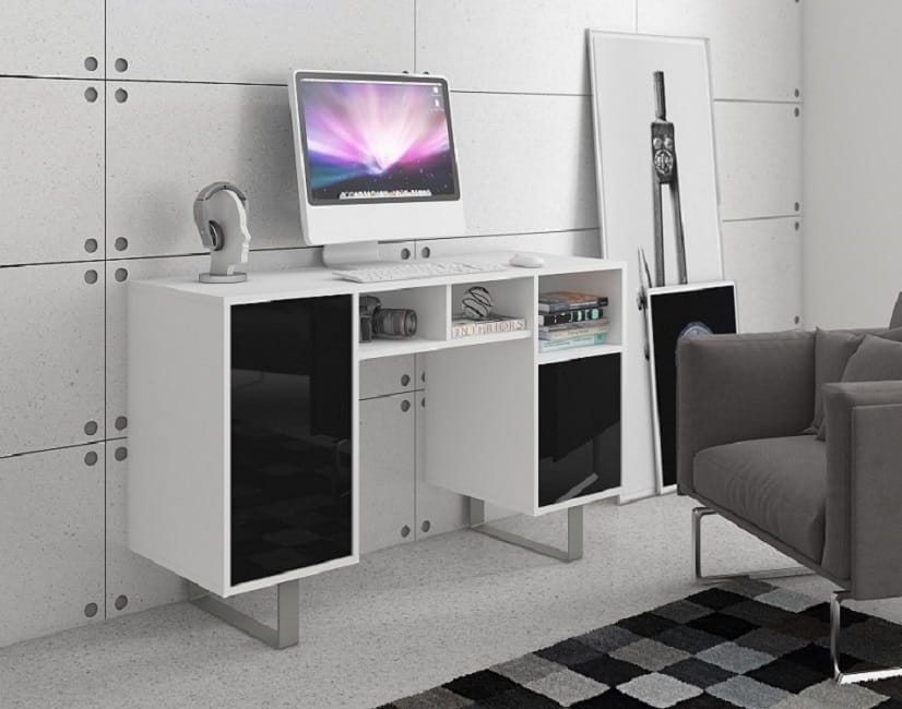 Biurko toaletka King - biały + czarny połysk