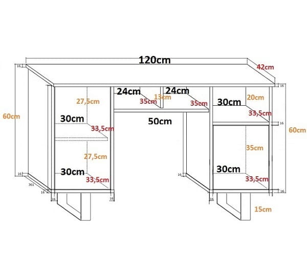 Biurko składa się z trzech otwartych półek oraz trzech zamkniętych.
