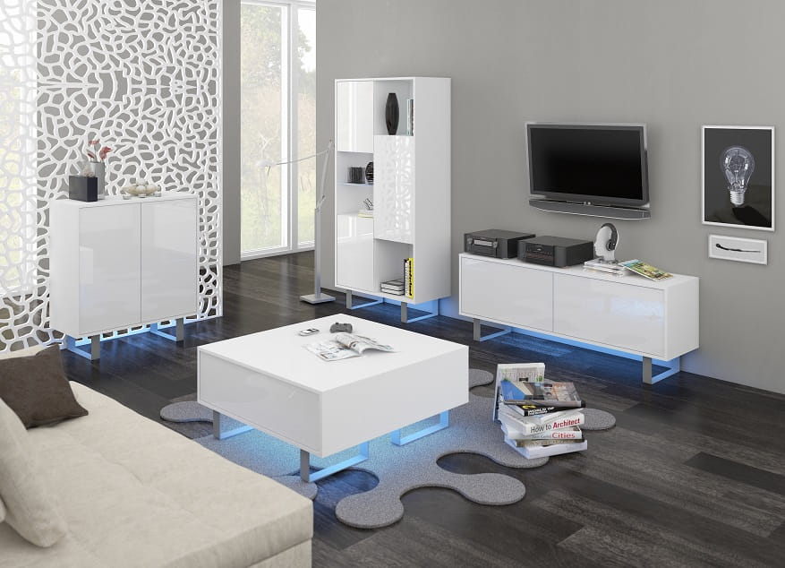 - Fronty mebli wykonane są na połysk (biały oraz czarny)