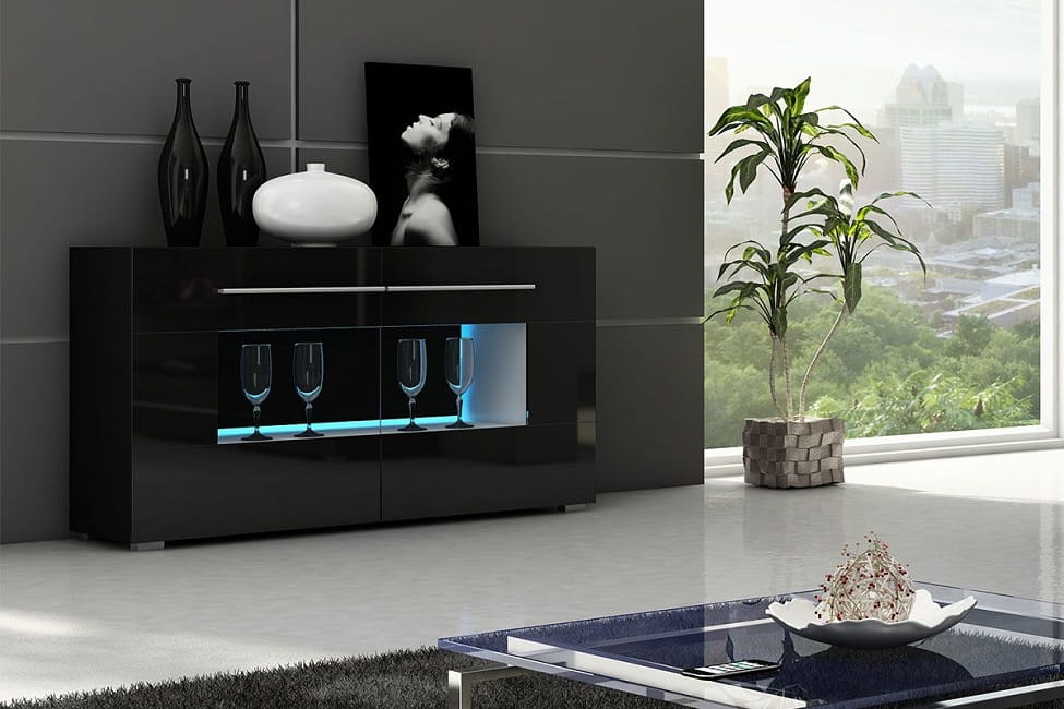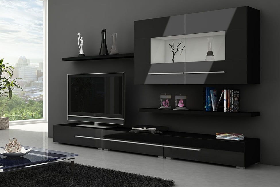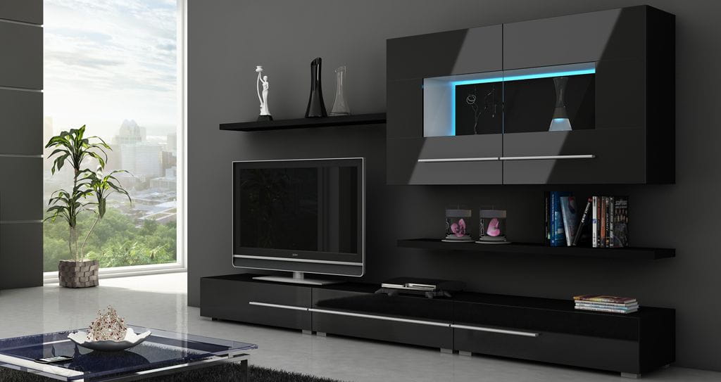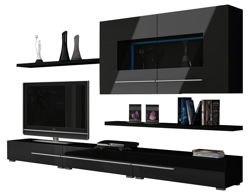 Designerska meblościanka KOLN - czarny połysk