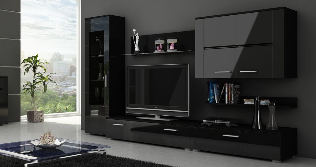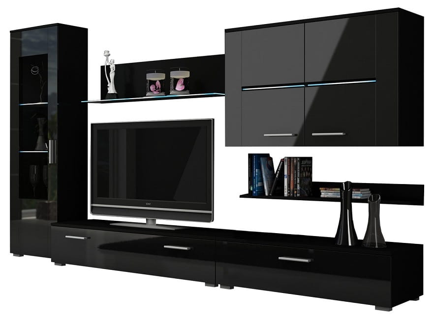 Designerska meblościanka Stuttgart - czarny połysk