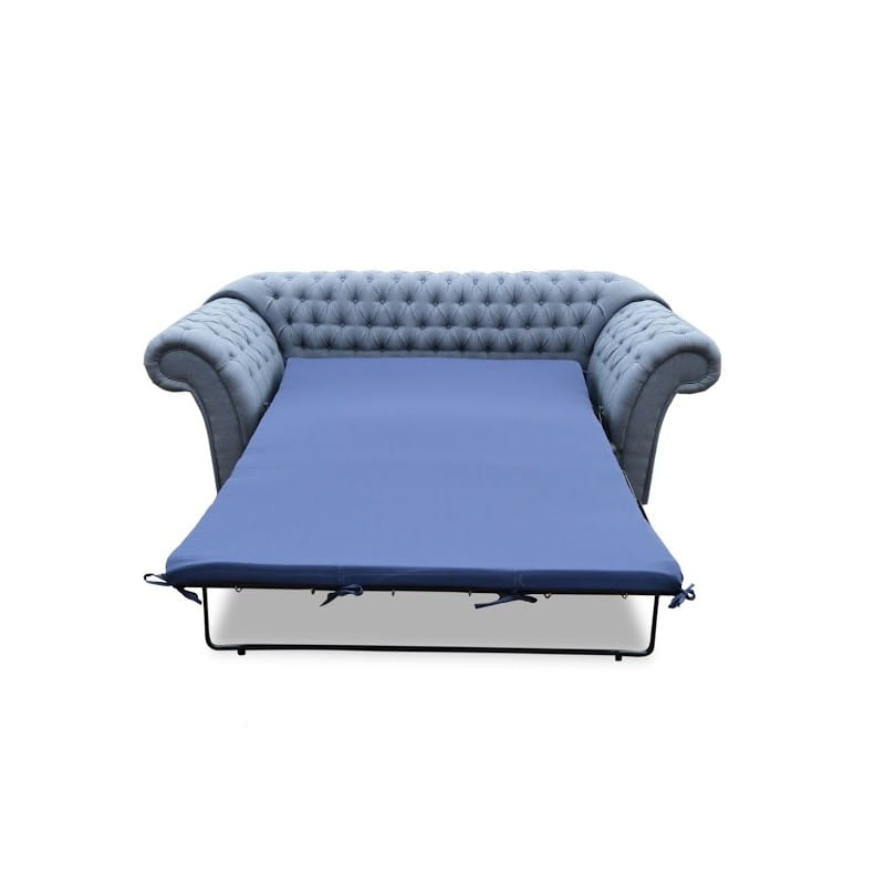 Stylowa sofa tapicerowana Madryt wyróżniająca się funkcją spania i szykownym pikowaniem, nadająca się do dużych przestrzeni.