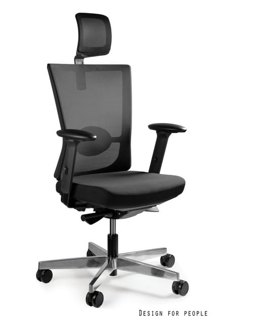 - Podłokietniki wykonane z tworzywa posiadają regulację (góra-dół, przód-tył, wychylenie na boki).