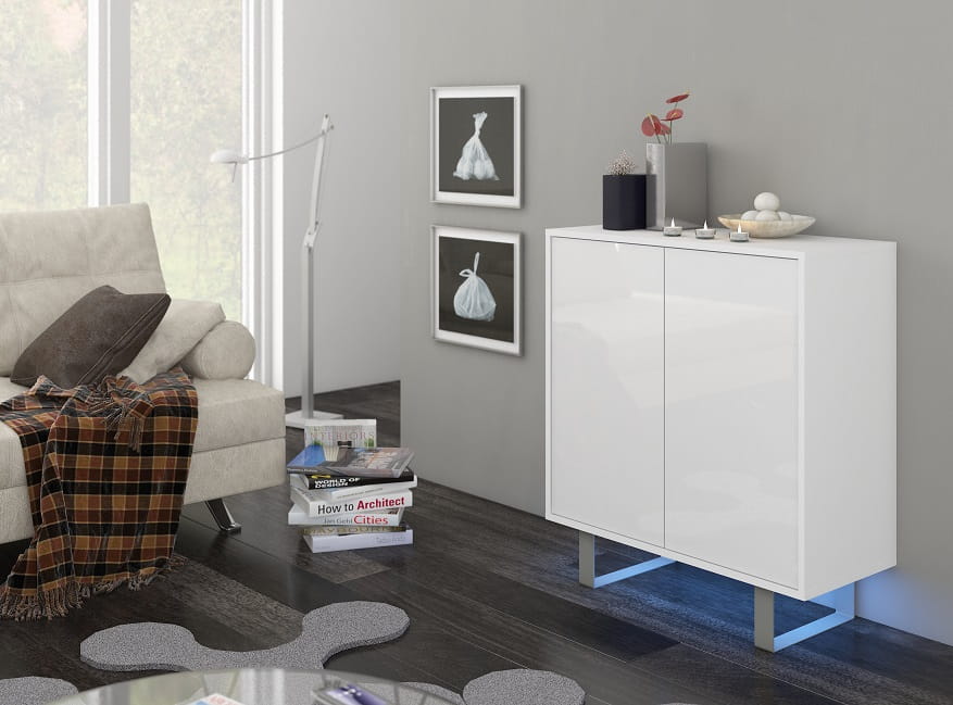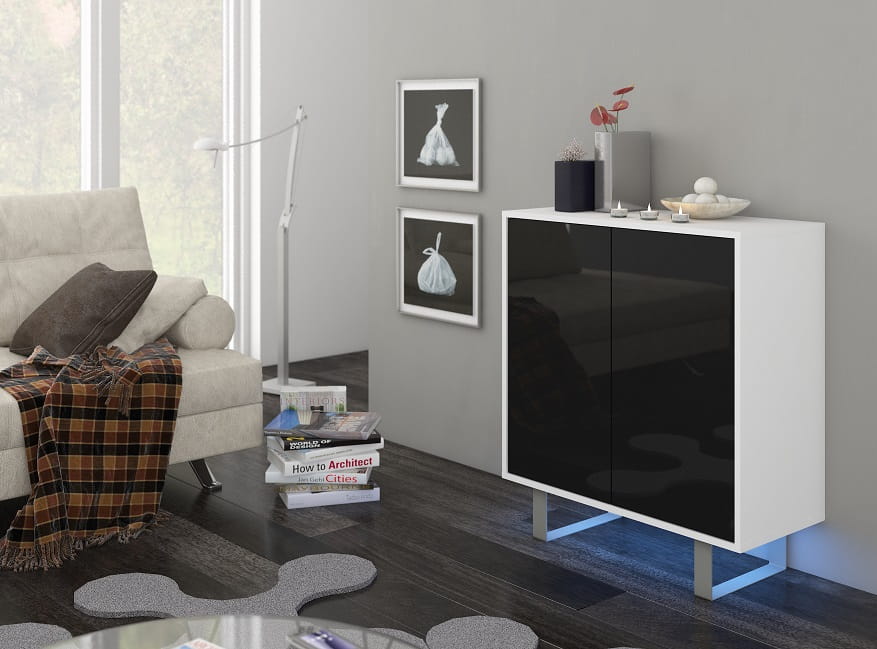 - Fronty mebli wykonane są na połysk (biały oraz czarny)
