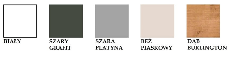 - Korpusy wykonane z płyty laminowanej 16mm, dostępne w 5 wersjach kolorystycznych