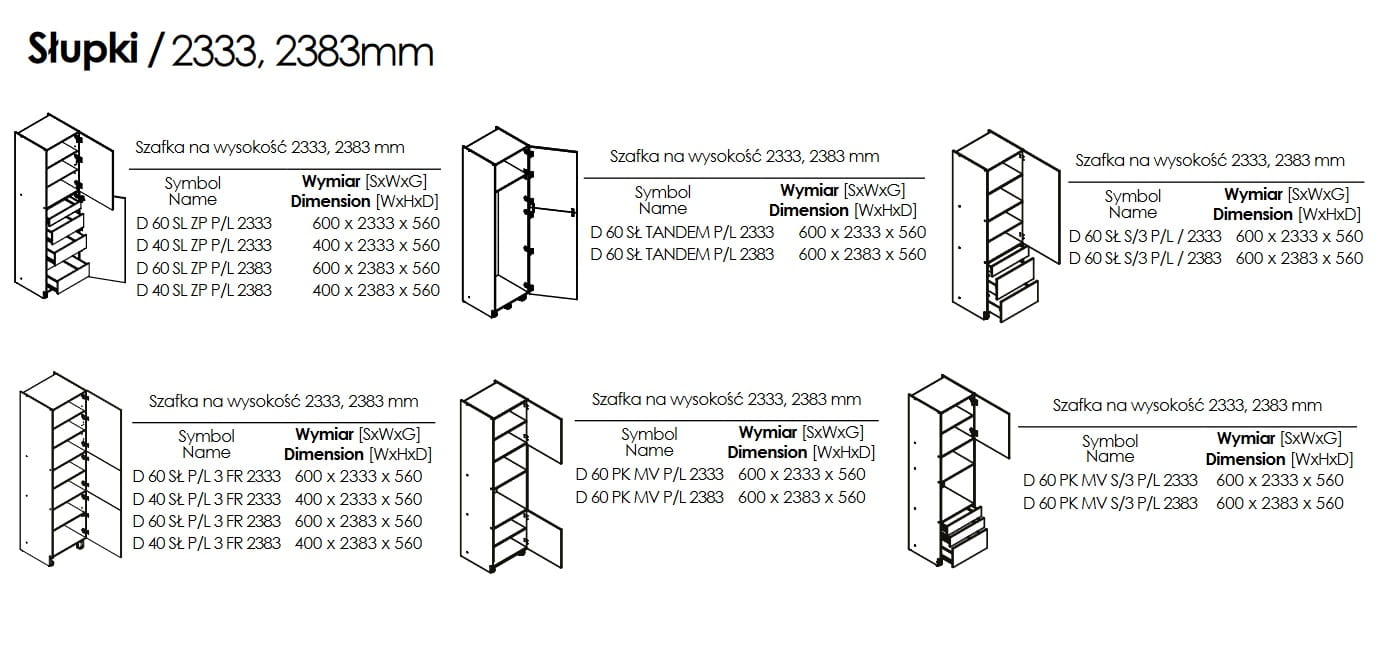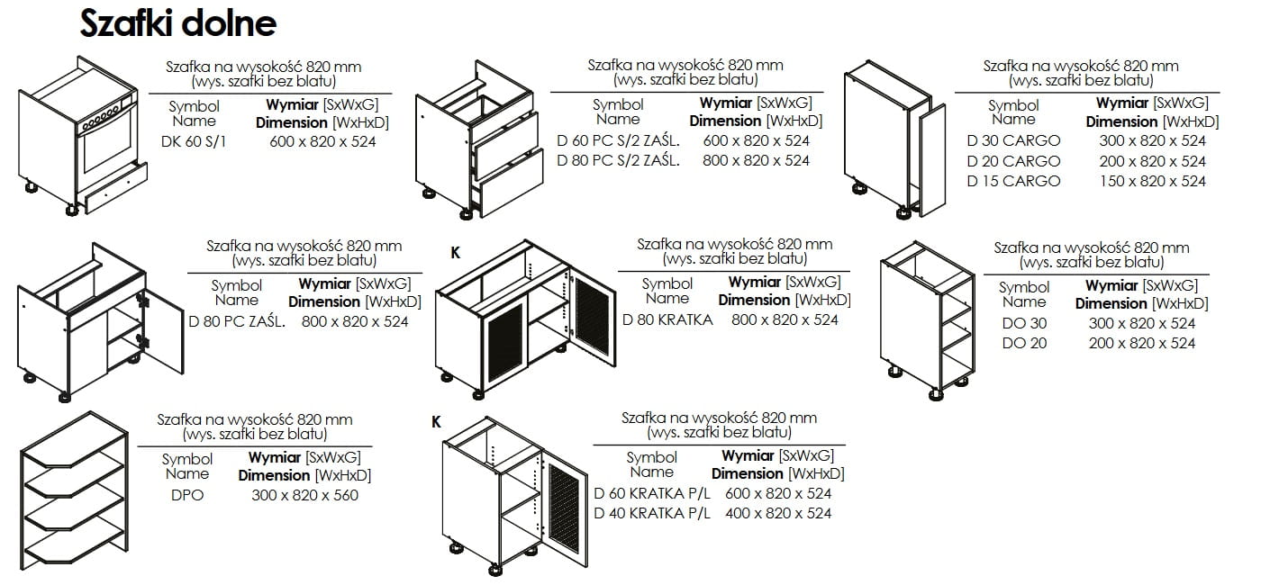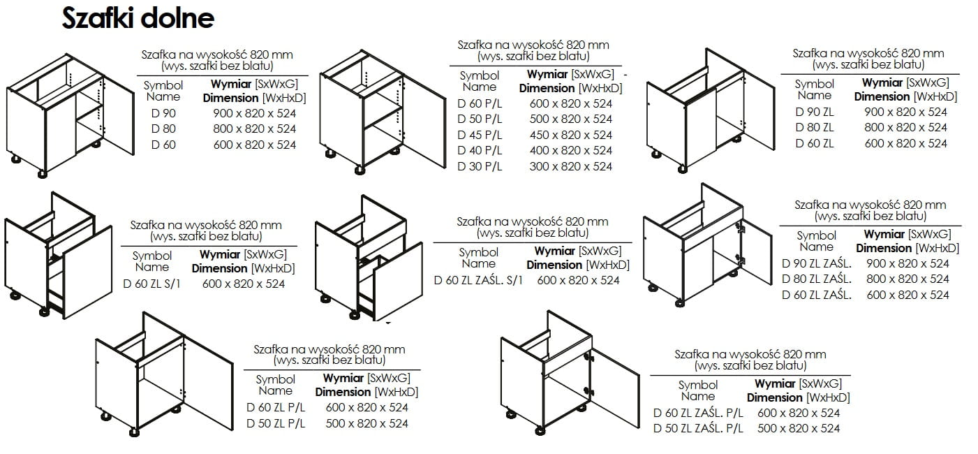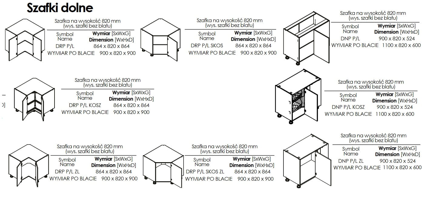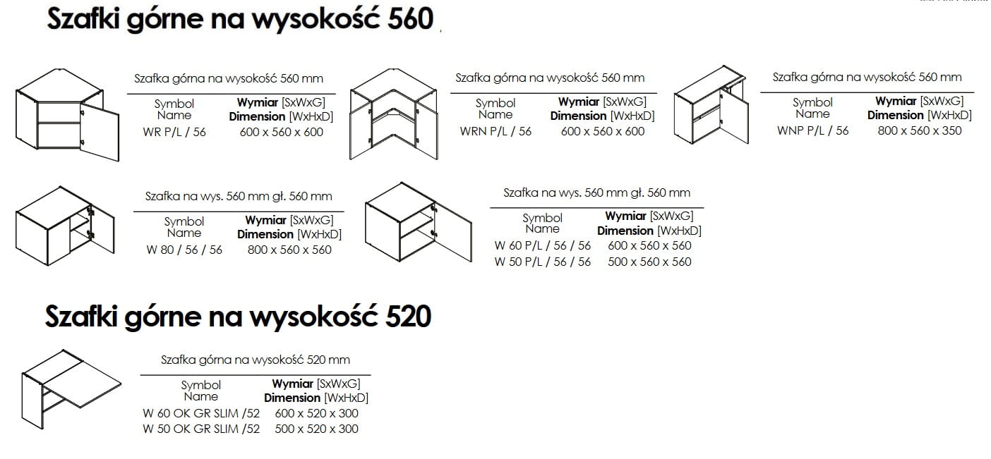 - Wyjątkowa głębokość szafek dolnych [524mm] , a szuflad [500mm]