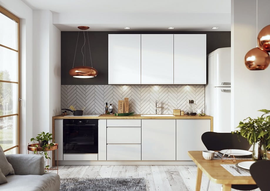 Można je perfekcyjnie zestawić z dedykowanymi blatami roboczym. A tych do wyboru jest również kilkanaście. Wśród nich znaleźć można wzory inspirowane drewnem – klasycznym orzechem i dębem w kilku wydaniach; kamieniami – trawertynem, marmurem i czarną skałą wulkaniczną, a także metalami takimi jak aluminium. Liczba możliwych kombinacji jest więc niezwykle szeroka.
