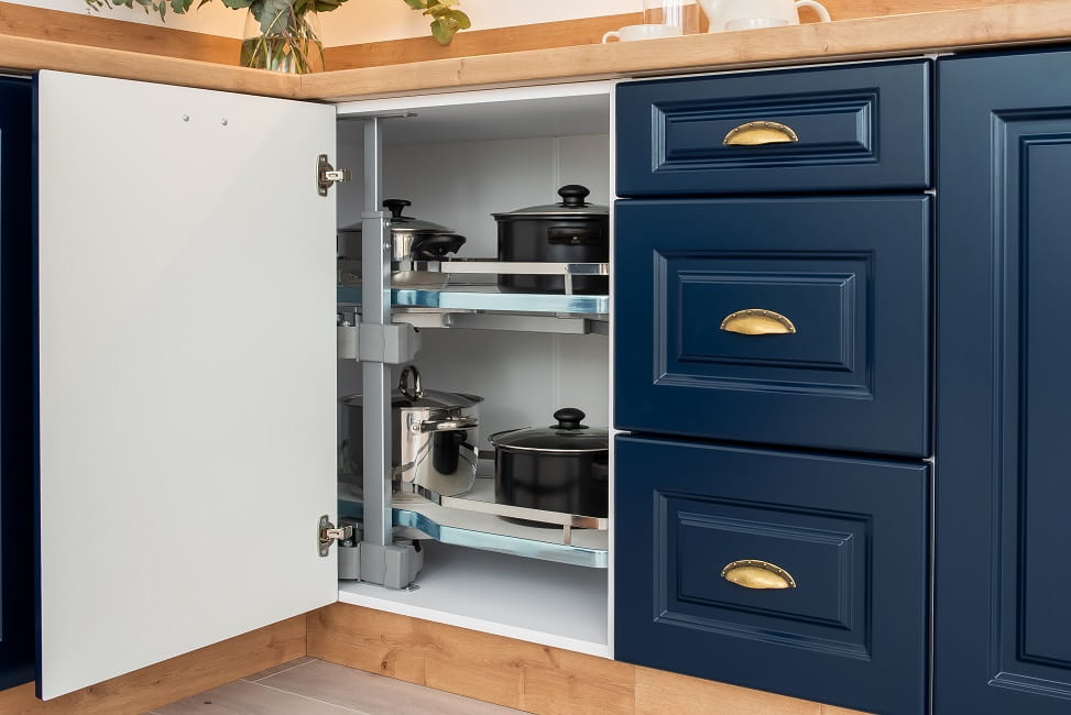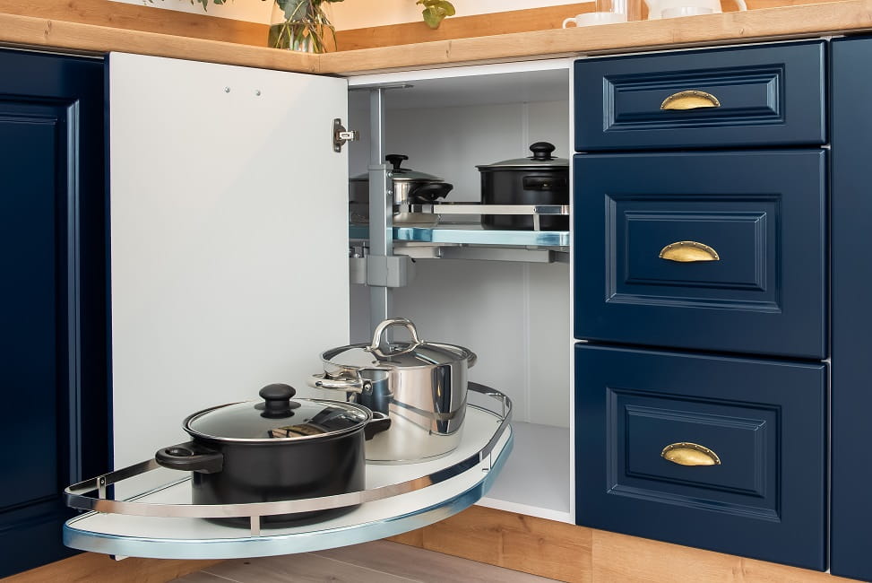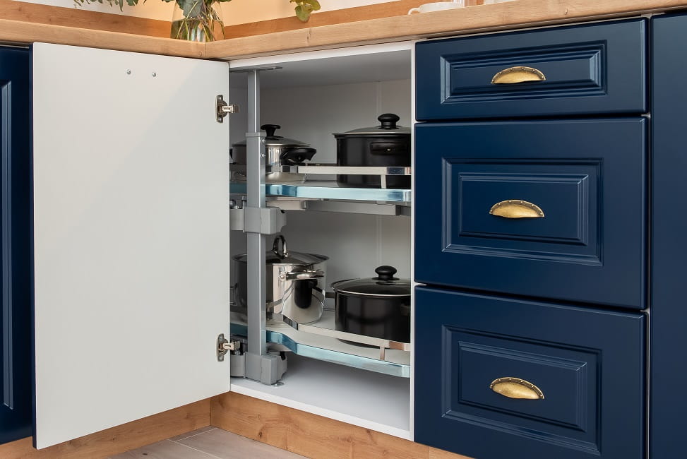 Ukłonem w stronę wygody i komfortu codziennej pracy w kuchni są okucia. Zawiasy i prowadnice wysokiej jakości gwarantują cichy i miękki dociąg frontów – koniec z trzaskaniem lub niedomkniętymi drzwiczkami, a także pełny wysuw szuflad.