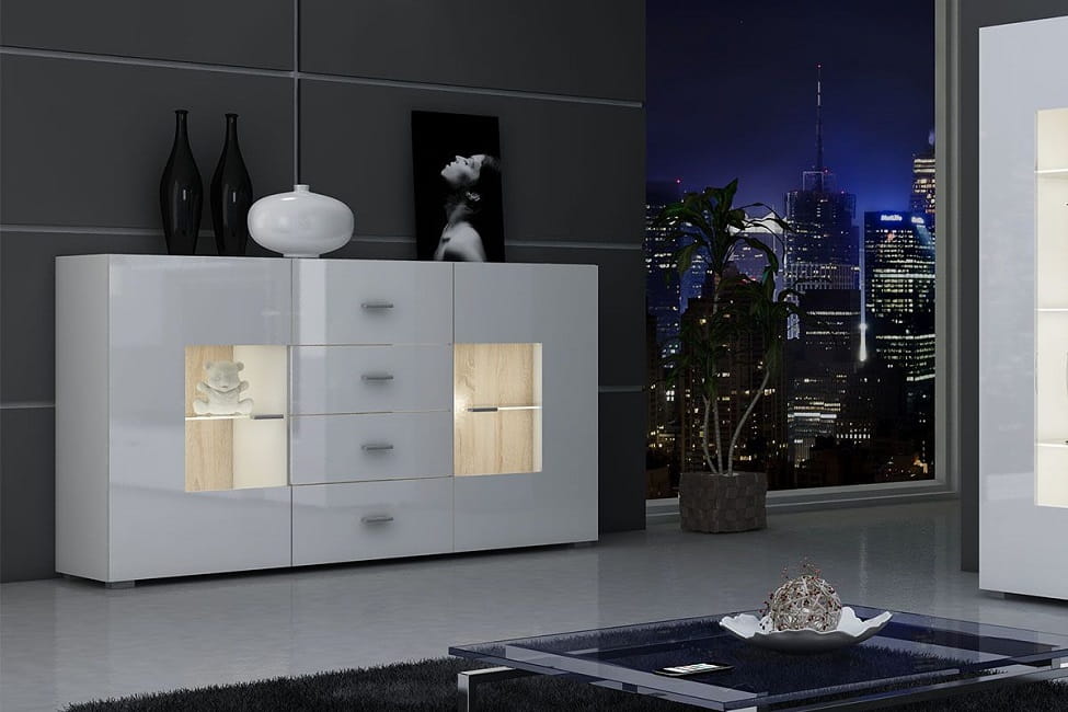 - fronty mebli w całości wykonane są na wysoki połysk