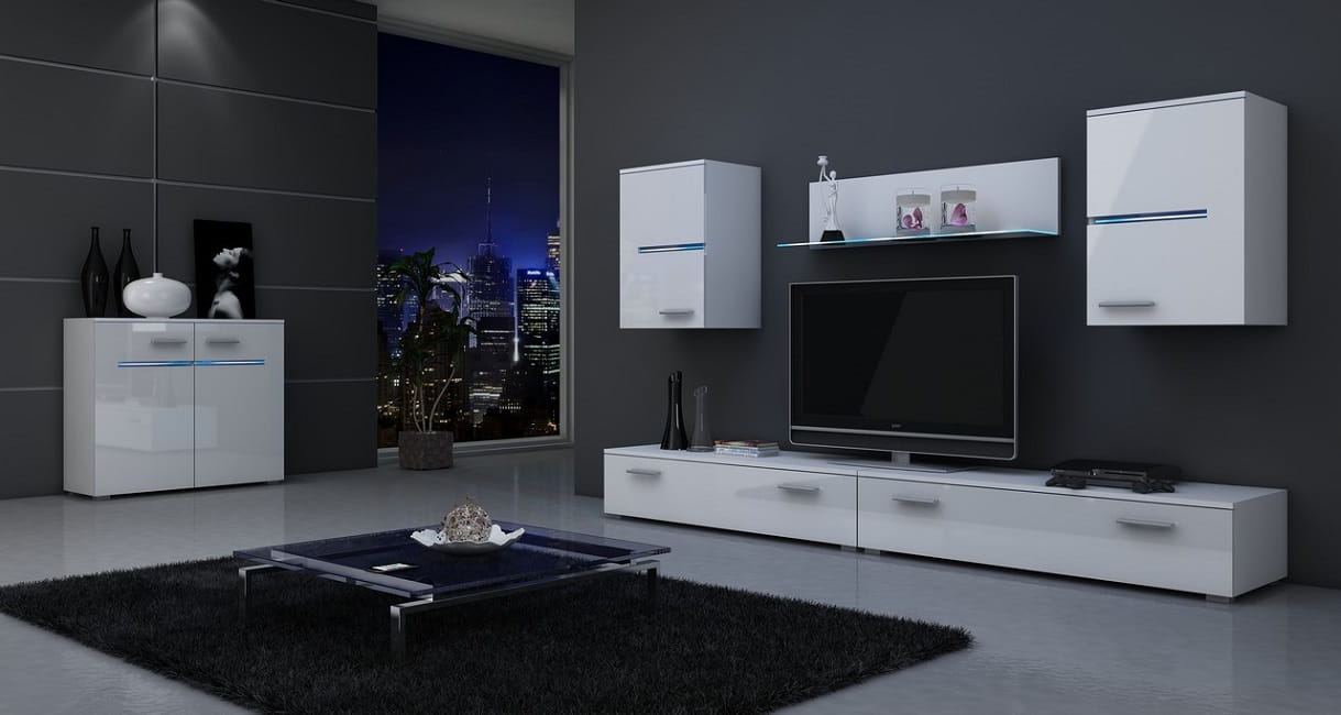 - fronty mebli w całości wykonane są na wysoki połysk