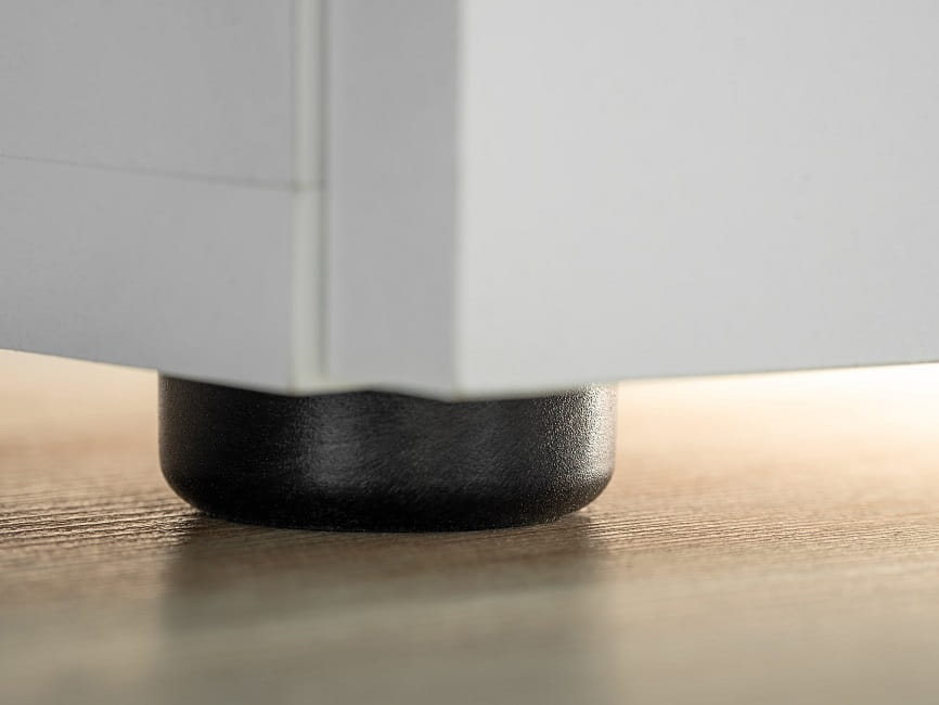 - Korpusy i fronty w kolorze biały mat i sosna norweska są matowe, wykonane z płyty laminowanej Pfleiderer odpornej na zarysowania.