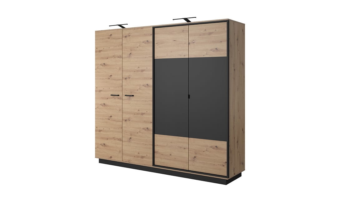 Naturalne dębowe drewno "przełamane" zostało kontrastową antracytową ramką, podkreślającą unikatowy wygląd mebla.