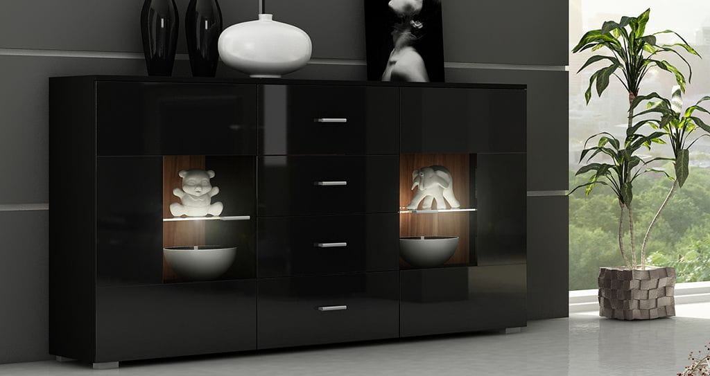 - korpus CZARNY MAT + fronty CZARNY WYSOKI POŁYSK: