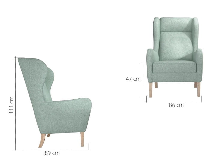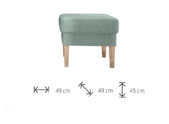 Fotel z podnóżkiem dostępny jest w tkaninie oraz skórze naturalnej. Możliwość wykonania w tkaninach dostępnych we wzorniku. Ostateczna cena uzależniona jest od wyboru obicia.