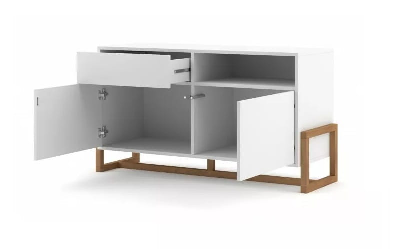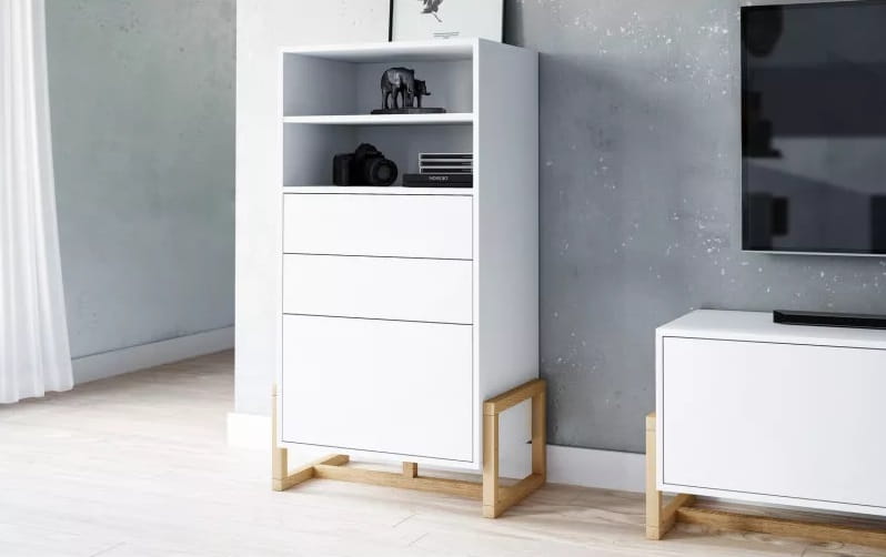 Kolekcja Oslo to zestaw nowoczesnych mebli utrzymanych w skandynawskim stylu. Poważnie pomyśleć o nim powinni fani minimalizmu, którzy potrzebują powierzchni do przechowywania. Wszystkie meble, zarówno komody jak i szafki czy biurko, łączą praktycyzm z surowym pięknem. Jednym z wyróżników jest tutaj system push to open, zastosowany we wszystkich zamykanych szafkach i szufladach. Pozwoliło to zrezygnować z klamek, aby stworzyć gładkie, estetyczne fronty. Do minimum ograniczono kolorystykę, gdyż mamy tylko czerń lub biel, za każdym razem podkreślaną bukowym wykończeniem nóżek, które stoją na straży stabilności i modernizmu. Zestaw Oslo stworzy w Twoim salonie nietuzinkowy klimat, podkreśli charakter mieszkańców i zapewni im to, czego potrzebują.