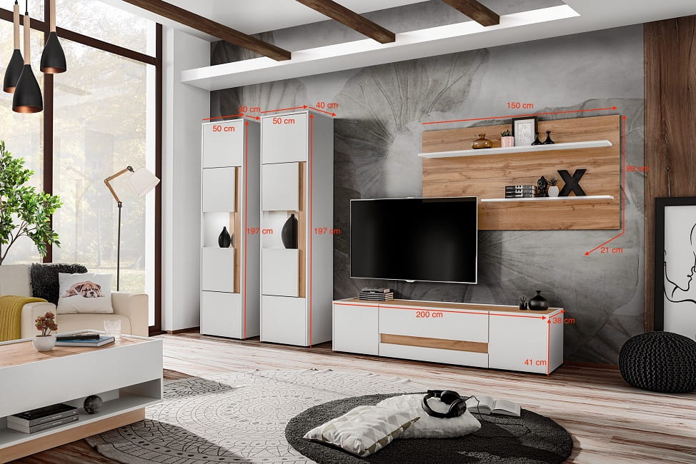 Zestaw meblościanka VIVA 7 - biały mat + dąb wotan