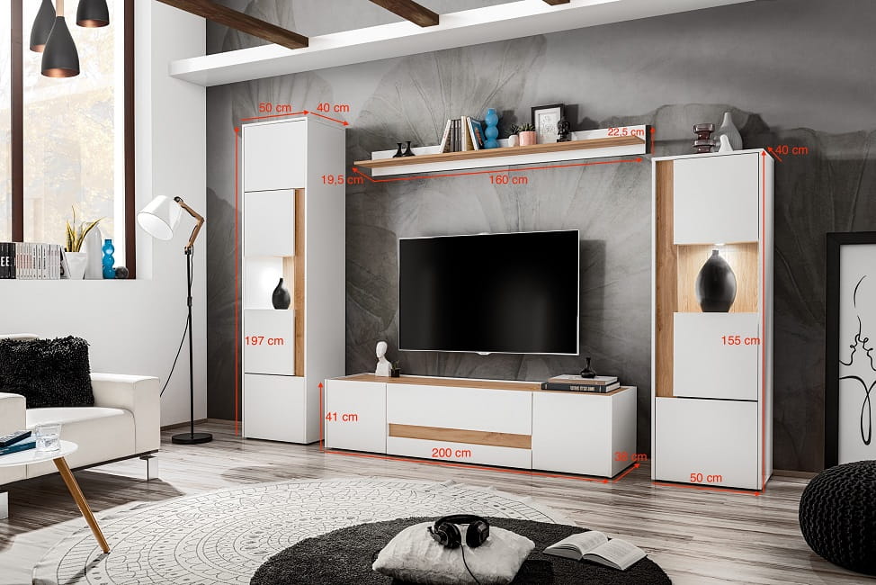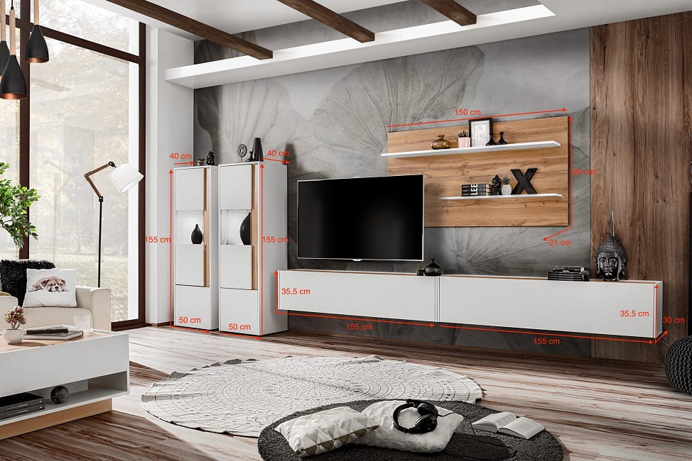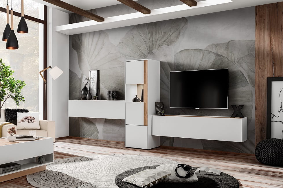 Zestaw meblościanka VIVA 8 - biały mat + dąb wotan