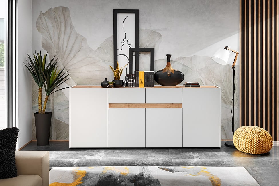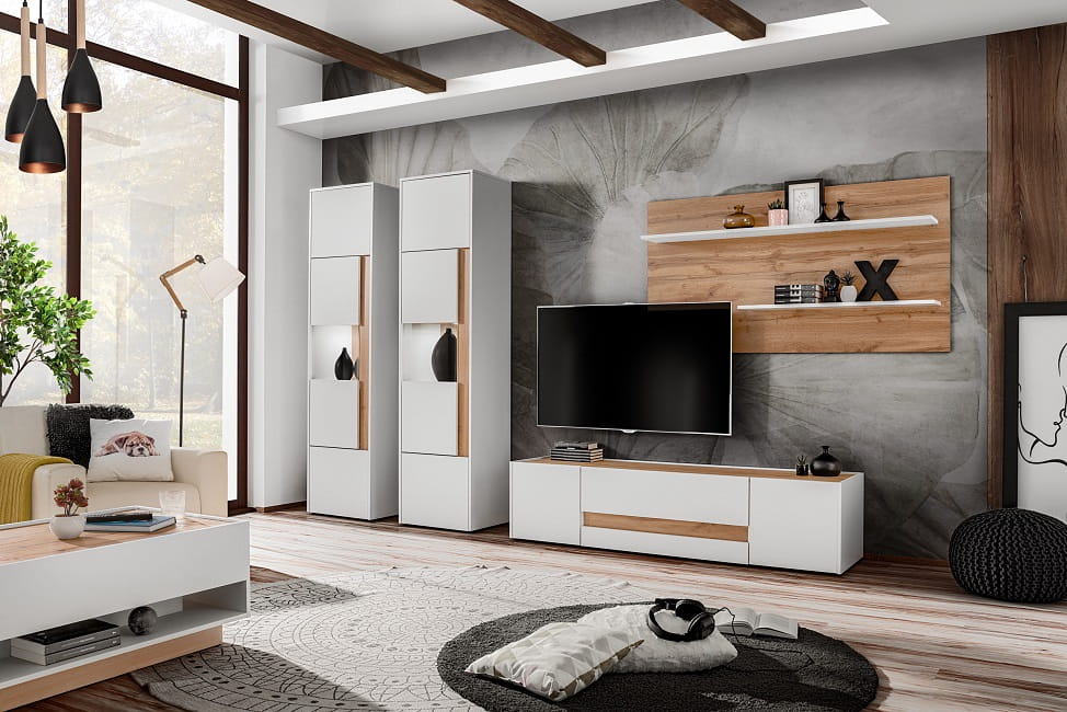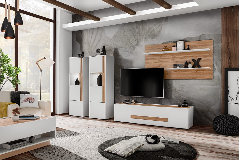 Nowoczesny zestaw Viva 8 w eleganckim połączeniu bieli z dębem wotan.
